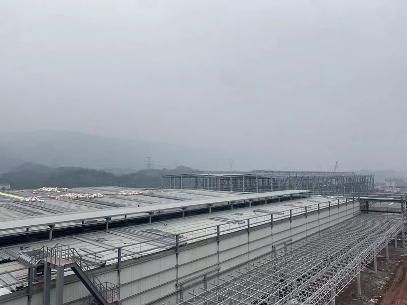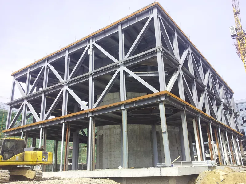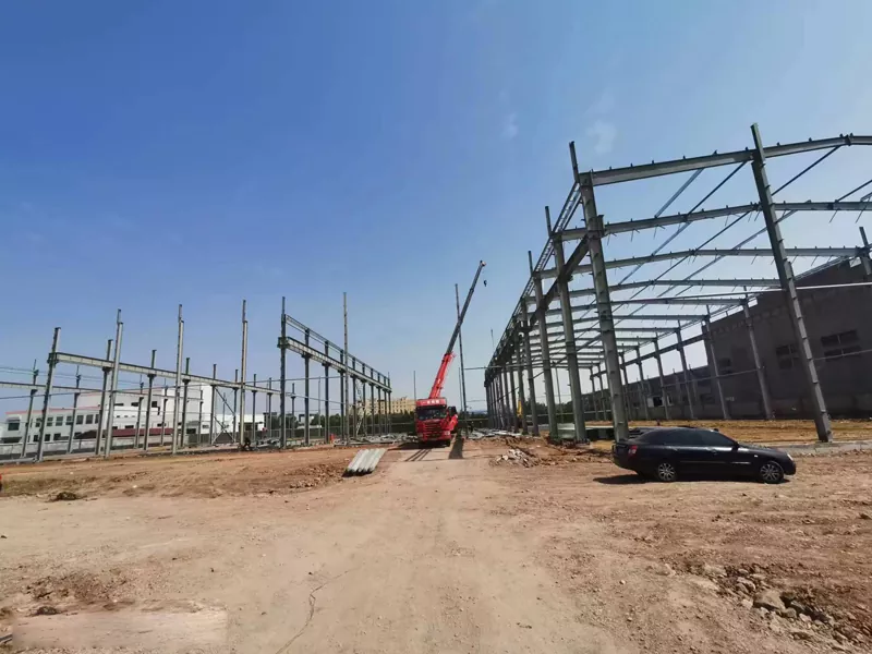 Hauptsächlich aus Stahlsäulen, Stahlträgern, Stahlsprächen usw., die durch Schweißen, Schränkeanschlüsse usw. in eine Rahmenkonstruktion zusammengebaut werden, usw.