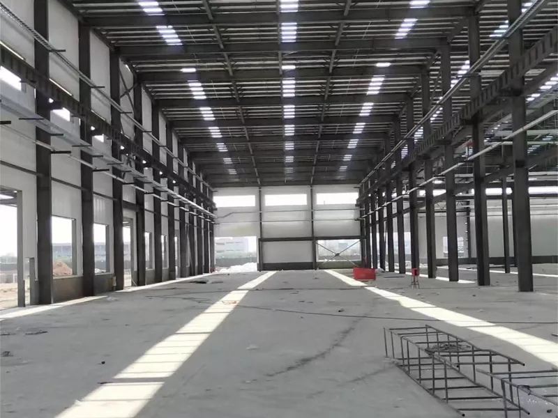 Das strukturelle Design von Stahlstrukturlager ermöglicht Flexibilität und Skalierbarkeit. Die modulare Konstruktion von Stahlkomponenten bedeutet, dass Lagerhäuser leicht erweitert oder modifiziert werden können, um die sich ändernden Geschäftsanforderungen zu decken. Diese Flexibilität erleichtert auch die effiziente Nutzung des Raums und maximiert die Speicherkapazität innerhalb des verfügbaren Fußabdrucks.