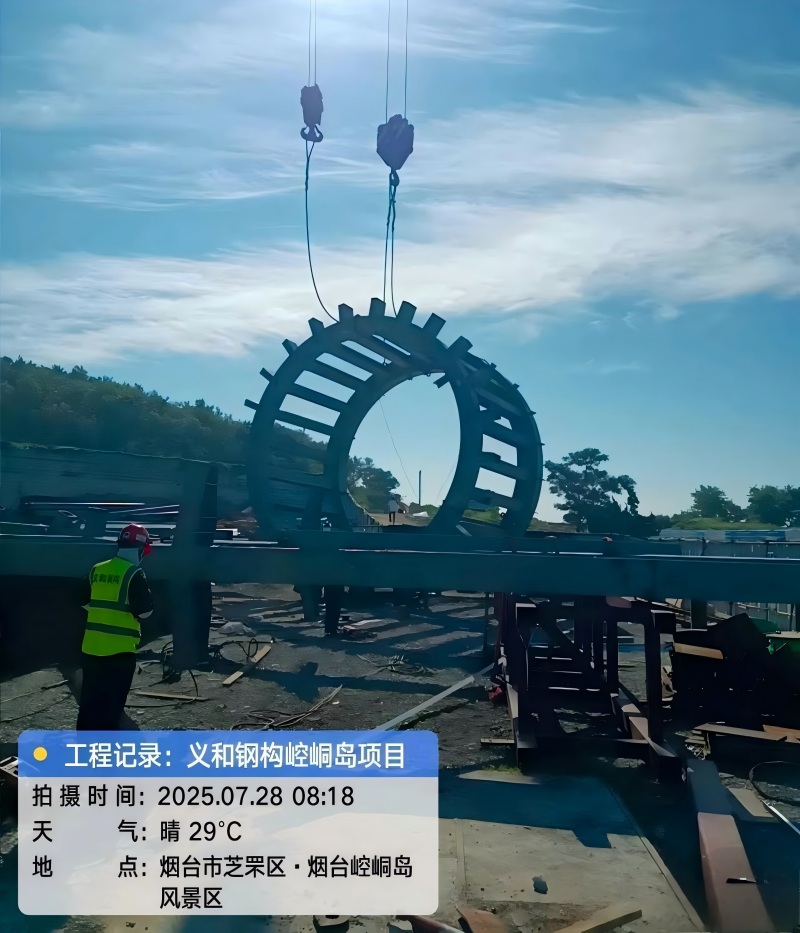 Kürzlich wurde das Dongyou-Projekt der Kongtong Scenic Area ins Leben gerufen, ein wichtiges Kultur- und Tourismusprojekt in der Stadt Yantai. Es wurde ein wichtiger Baumeilenstein erreicht – das Anheben des kreisförmigen Fachwerkträgers des Theaterzentrums. Während der 650 Tonnen schwere Raupenkran vor Ort langsam angehoben wurde, wurde der 24 Tonnen schwere kreisförmige Fachwerkträger im Kernbereich des Theaters präzise angehoben. Dieses Theater, das den orientalischen Mythos aufführen wird, hat offiziell sein „Rückgrat aus StahlDieser Schlüsselprozess markiert wichtige Etappenfortschritte beim Bau des Stahlbaus und schafft günstige Voraussetzungen für den ordnungsgemäßen Fortschritt des gesamten Projekts.