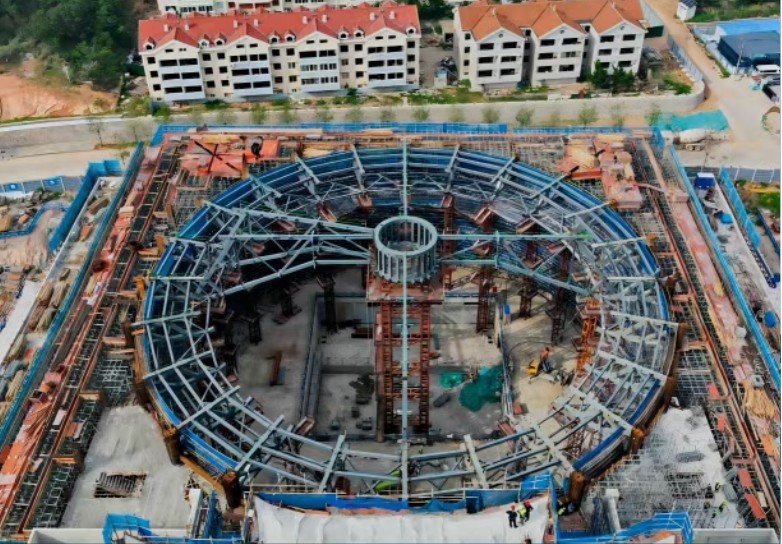 Als zentrale tragende Struktur des Theaters hat die Installation des kreisförmigen Fachwerkträgers bei diesem Bau oberste Priorität. Dieses Fachwerk hat eine große Spannweite und ein großes Gewicht. Während des Prozesses mussten zahlreiche Herausforderungen bewältigt werden, wie z. B. Arbeiten in großen Höhen und eine präzise Ausrichtung. Große Hebegeräte wurden verwendet, um eine Positionierungsgenauigkeit im Millimeterbereich sicherzustellen. Diese Präzision sorgte für einen stabilen Halt für die Dachkonstruktion des Theaters.