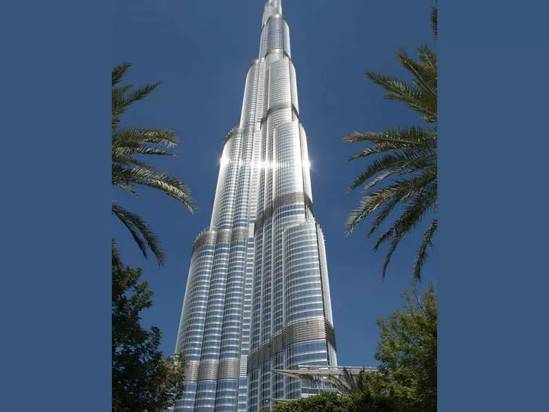 ● Der Burj Khalifa in Dubai, die Vereinigten Arabischen Emirate, ist das höchste Gebäude der Welt mit einem hybriden Stahlbetonrahmen. Es steht auf 163 Stockwerken und über 828 Meter hoch.