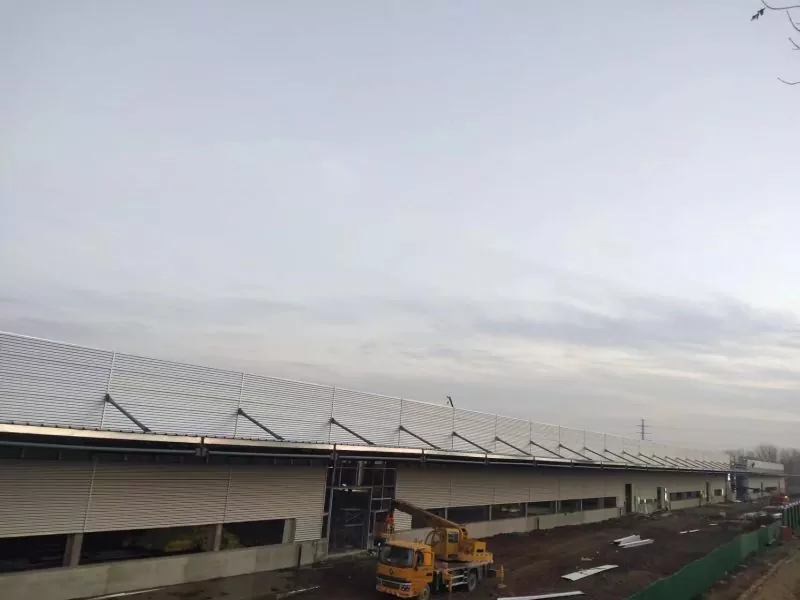 Das Portalrahmendesign des Lagerhauses verfügt über eine Reihe von Stahlsäulen und Sparren, die ein starres und stabiles Gerüst bilden. Dieses Design bietet eine hervorragende tragende Kapazität, um sicherzustellen, dass das Lagerhaus schwere Lasten unterstützen und extremen Wetterbedingungen standhalten kann. Die Stahlkomponenten sind typischerweise vorgefertigt und vor Ort zusammengestellt, um die Bauzeit zu verkürzen und die Präzision in der endgültigen Struktur zu gewährleisten.