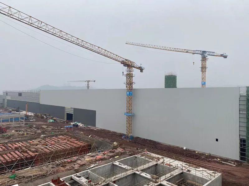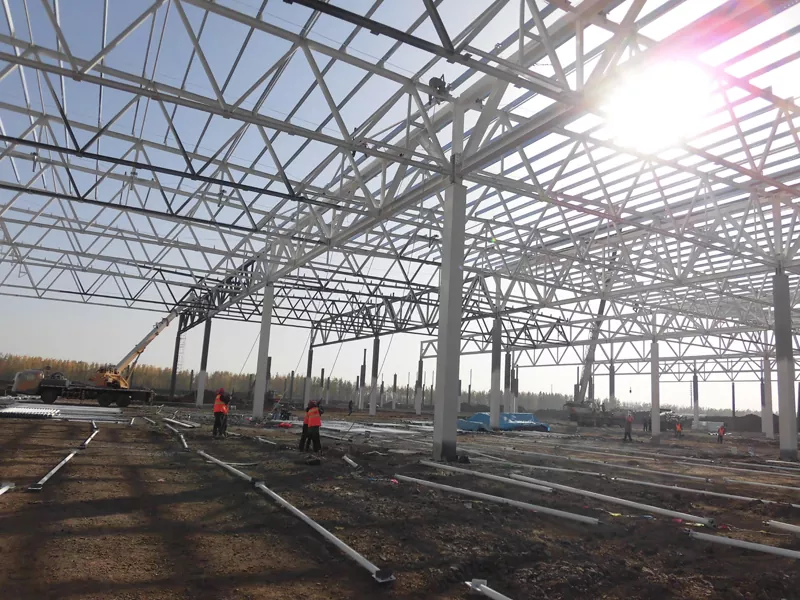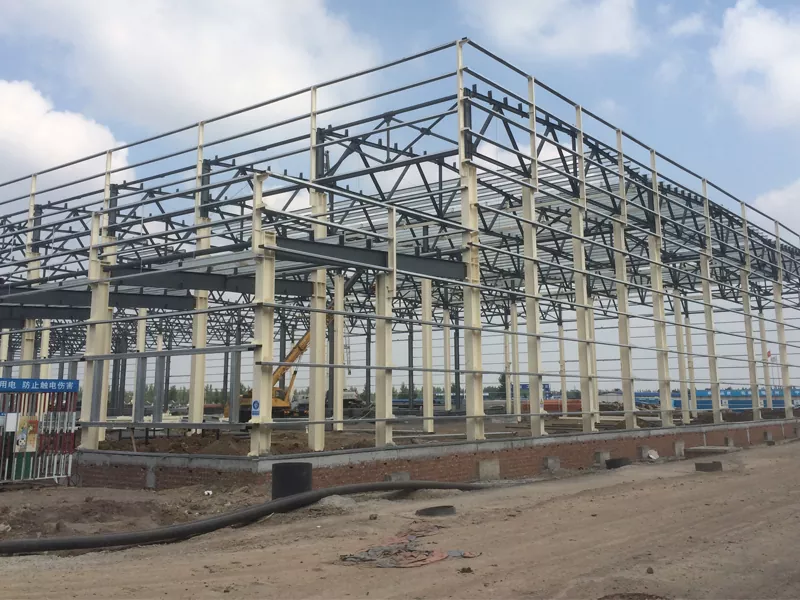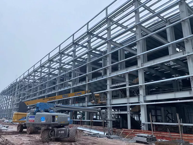 Der Stahlrahmen des Workshops besteht typischerweise aus Säulen, Balken und Zahnspangen, die mit einer starre und stabilen Struktur verbunden sind. Die Stahlelemente werden häufig in einer Fabrik vorgefertigt und dann zur Montage zum Bauwerk gebracht, wodurch die Bauzeit erheblich verkürzt wird.